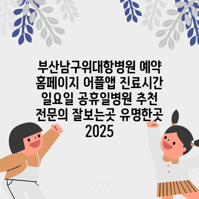 부산남구위대항병원 예약 홈페이지 어플앱 진료시간 일요일 공휴일병원 추천 전연락 잘보는곳 유명한곳 2025 에 대해 자주 묻는 질문 TOP 5