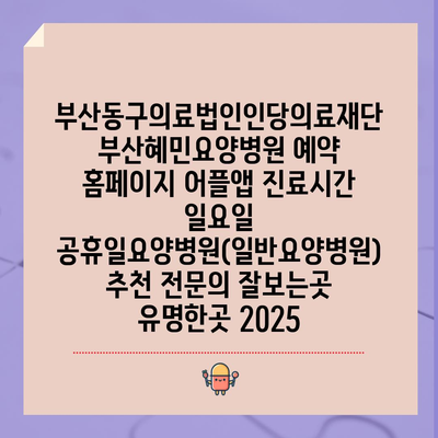 부산동구의료법인인당의료재단 부산혜민요양병원 예약 홈페이지 어플앱 진료시간 일요일 공휴일요양병원(일반요양병원) 추천 전연락 잘보는곳 유명한곳 2025 에 대해 자주 묻는 질문 TOP 5