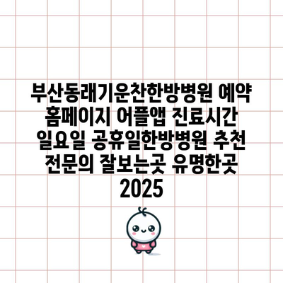 부산동래기운찬한방병원 예약 홈페이지 어플앱 진료시간 일요일 공휴일한방병원 추천 전연락 잘보는곳 유명한곳 2025 에 대해 자주 묻는 질문 TOP 5