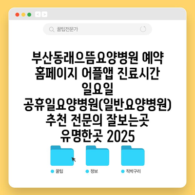 부산동래으뜸요양병원 예약 홈페이지 어플앱 진료시간 일요일 공휴일요양병원(일반요양병원) 추천 전연락 잘보는곳 유명한곳 2025 에 대해 자주 묻는 질문 TOP 5