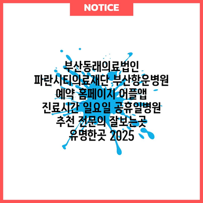 부산동래의료법인 파란시티의료재단 부산항운병원 예약 홈페이지 어플앱 진료시간 일요일 공휴일병원 추천 전연락 잘보는곳 유명한곳 2025 에 대해 자주 묻는 질문 TOP 5