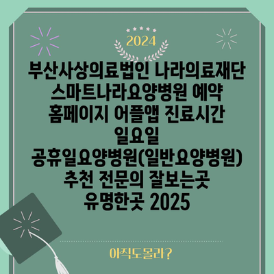 부산사상의료법인 나라의료재단 스마트나라요양병원 예약 홈페이지 어플앱 진료시간 일요일 공휴일요양병원(일반요양병원) 추천 전연락 잘보는곳 유명한곳 2025 에 대해 자주 묻는 질문 TOP 5