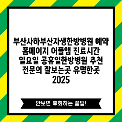 부산사하부산자생한방병원 예약 홈페이지 어플앱 진료시간 일요일 공휴일한방병원 추천 전연락 잘보는곳 유명한곳 2025 에 대해 자주 묻는 질문 TOP 5