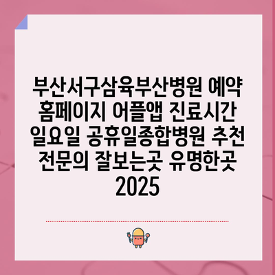 부산서구삼육부산병원 예약 홈페이지 어플앱 진료시간 일요일 공휴일종합병원 추천 전연락 잘보는곳 유명한곳 2025 에 대해 자주 묻는 질문 TOP 5