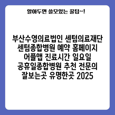부산수영의료법인 센텀의료재단 센텀종합병원 예약 홈페이지 어플앱 진료시간 일요일 공휴일종합병원 추천 전연락 잘보는곳 유명한곳 2025 에 대해 자주 묻는 질문 TOP 5