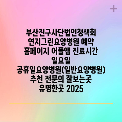 부산진구사단법인청색회 연지그린요양병원 예약 홈페이지 어플앱 진료시간 일요일 공휴일요양병원(일반요양병원) 추천 전연락 잘보는곳 유명한곳 2025 에 대해 자주 묻는 질문 TOP 5