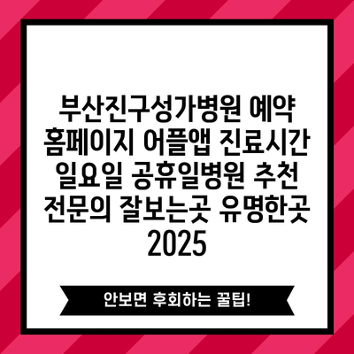 부산진구성가병원 예약 홈페이지 어플앱 진료시간 일요일 공휴일병원 추천 전연락 잘보는곳 유명한곳 2025 에 대해 자주 묻는 질문 TOP 5
