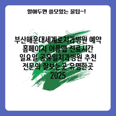 부산해운대세계로치과병원 예약 홈페이지 어플앱 진료시간 일요일 공휴일치과병원 추천 전연락 잘보는곳 유명한곳 2025 에 대해 자주 묻는 질문 TOP 5
