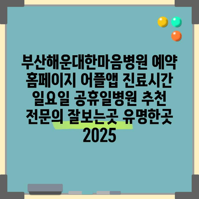 부산해운대한마음병원 예약 홈페이지 어플앱 진료시간 일요일 공휴일병원 추천 전연락 잘보는곳 유명한곳 2025 에 대해 자주 묻는 질문 TOP 5