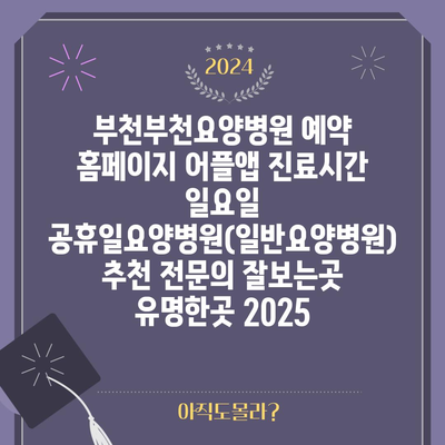 부천부천요양병원 예약 홈페이지 어플앱 진료시간 일요일 공휴일요양병원(일반요양병원) 추천 전연락 잘보는곳 유명한곳 2025 에 대해 자주 묻는 질문 TOP 5