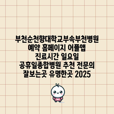 부천순천향대학교부속부천병원 예약 홈페이지 어플앱 진료시간 일요일 공휴일종합병원 추천 전연락 잘보는곳 유명한곳 2025 에 대해 자주 묻는 질문 TOP 5