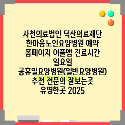 사천의료법인 덕산의료재단 한마음노인요양병원 예약 홈페이지 어플앱 진료시간 일요일 공휴일요양병원(일반요양병원) 추천 전문의 잘보는곳 유명한곳 2025