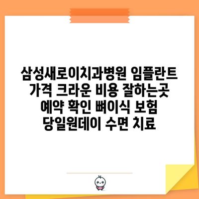✅ 삼성새로이치과병원 임플란트와 크라운 비용을 자세히 알아보세요.