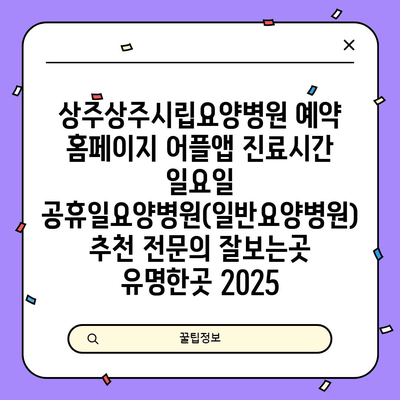 상주상주시립요양병원 예약 홈페이지 어플앱 진료시간 일요일 공휴일요양병원(일반요양병원) 추천 전연락 잘보는곳 유명한곳 2025 에 대해 자주 묻는 질문 TOP 5