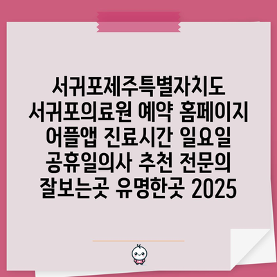 서귀포제주특별자치도 서귀포의료원 예약 홈페이지 어플앱 진료시간 일요일 공휴일의사 추천 전연락 잘보는곳 유명한곳 2025 에 대해 자주 묻는 질문 TOP 5