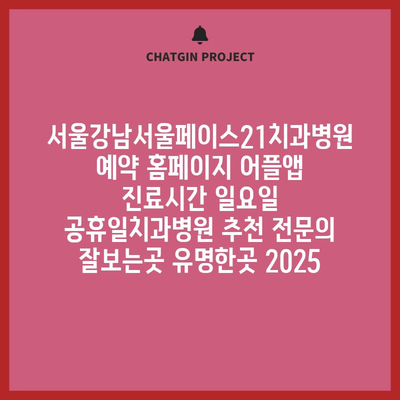서울강남서울페이스21치과병원 예약 홈페이지 어플앱 진료시간 일요일 공휴일치과병원 추천 전연락 잘보는곳 유명한곳 2025 에 대해 자주 묻는 질문 TOP 5