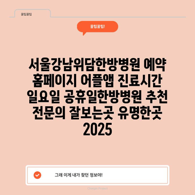 서울강남위담한방병원 예약 홈페이지 어플앱 진료시간 일요일 공휴일한방병원 추천 전연락 잘보는곳 유명한곳 2025 에 대해 자주 묻는 질문 TOP 5