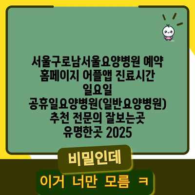 서울구로남서울요양병원 예약 홈페이지 어플앱 진료시간 일요일 공휴일요양병원(일반요양병원) 추천 전연락 잘보는곳 유명한곳 2025 에 대해 자주 묻는 질문 TOP 5