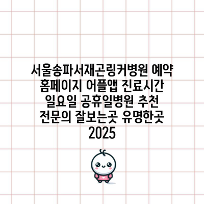 서울송파서재곤링커병원 예약 홈페이지 어플앱 진료시간 일요일 공휴일병원 추천 전연락 잘보는곳 유명한곳 2025 에 대해 자주 묻는 질문 TOP 5