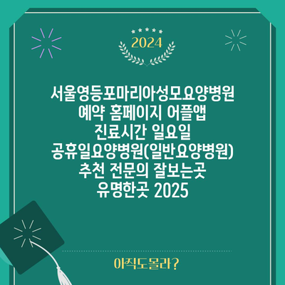 ✅ 서울영등포마리아성모요양병원의 예약 방법과 진료시간을 알아보세요.