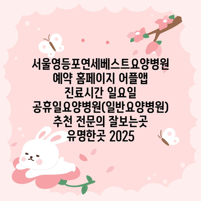 서울영등포연세베스트요양병원 예약 홈페이지 어플앱 진료시간 일요일 공휴일요양병원(일반요양병원) 추천 전연락 잘보는곳 유명한곳 2025 에 대해 자주 묻는 질문 TOP 5