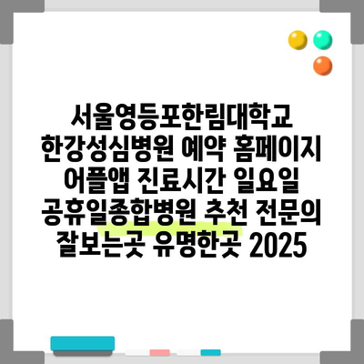서울영등포한림대학교 한강성심병원 예약 홈페이지 어플앱 진료시간 일요일 공휴일종합병원 추천 전연락 잘보는곳 유명한곳 2025 에 대해 자주 묻는 질문 TOP 5