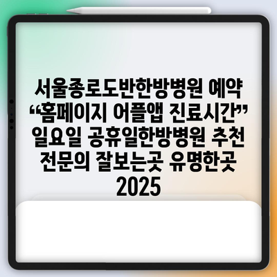 서울종로도반한방병원 예약 홈페이지 어플앱 진료시간 일요일 공휴일한방병원 추천 전연락 잘보는곳 유명한곳 2025 에 대해 자주 묻는 질문 TOP 5