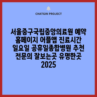 서울중구국립중앙의료원 예약 홈페이지 어플앱 진료시간 일요일 공휴일종합병원 추천 전연락 잘보는곳 유명한곳 2025 에 대해 자주 묻는 질문 TOP 5