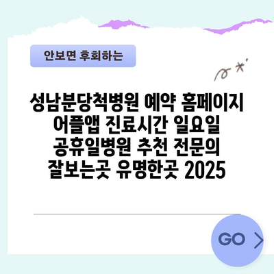 성남분당척병원 예약 홈페이지 어플앱 진료시간 일요일 공휴일병원 추천 전문의 잘보는곳 유명한곳 2025