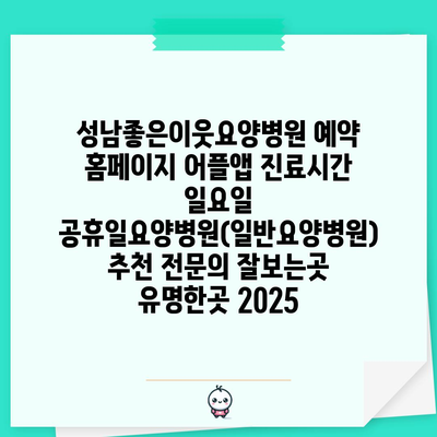 성남좋은이웃요양병원 예약 홈페이지 어플앱 진료시간 일요일 공휴일요양병원(일반요양병원) 추천 전연락 잘보는곳 유명한곳 2025 에 대해 자주 묻는 질문 TOP 5