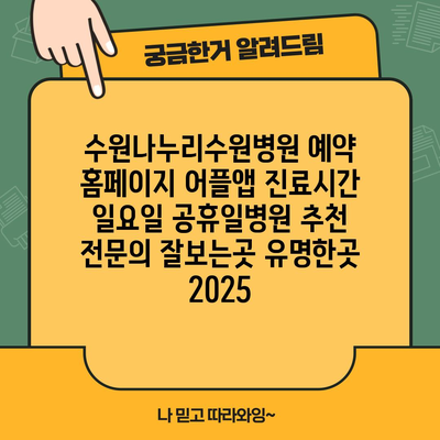 수원나누리수원병원 예약 홈페이지 어플앱 진료시간 일요일 공휴일병원 추천 전연락 잘보는곳 유명한곳 2025 에 대해 자주 묻는 질문 TOP 5