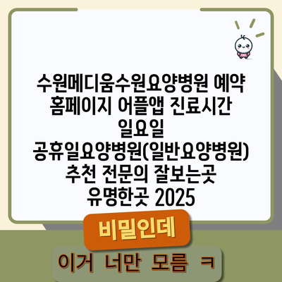 ✅ 수원메디움 수원요양병원의 진료시간과 예약 방법을 자세히 알아보세요.