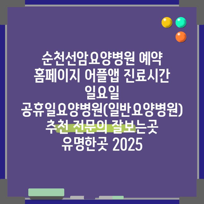 ✅ 순천선암요양병원의 진료시간과 예약 방법을 자세히 알아보세요.
