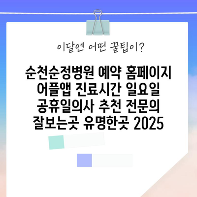 ✅ 순천순정병원의 진료시간과 예약 방법을 쉽게 알아보세요!