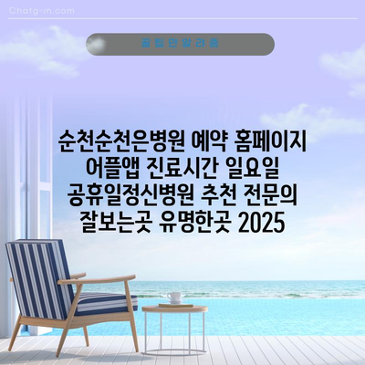 순천순천은병원 예약 홈페이지 어플앱 진료시간 일요일 공휴일정신병원 추천 전연락 잘보는곳 유명한곳 2025는 정신 건강을 위해 중요한 선택입니다.