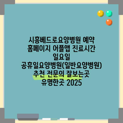 시흥베드로요양병원 예약 홈페이지 어플앱 진료시간 일요일 공휴일요양병원(일반요양병원) 추천 전연락 잘보는곳 유명한곳 2025 에 대해 자주 묻는 질문 TOP 5