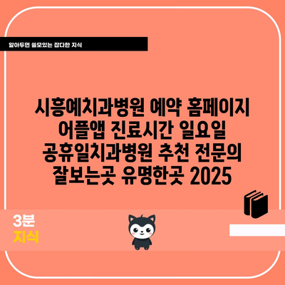 시흥예치과병원 예약 홈페이지 어플앱 진료시간 일요일 공휴일치과병원 추천 전연락 잘보는곳 유명한곳 2025 에 대해 자주 묻는 질문 TOP 5
