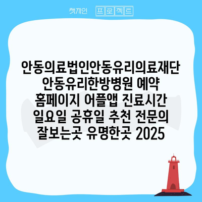 안동의료법인안동유리의료재단 안동유리한방병원 예약 홈페이지 어플앱 진료시간 일요일 공휴일 추천 전연락 잘보는곳 유명한곳 2025 에 대해 자주 묻는 질문 TOP 5
