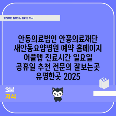 안동의료법인 안흥의료재단 새안동요양병원 예약 홈페이지 어플앱 진료시간 일요일 공휴일 추천 전연락 잘보는곳 유명한곳 2025 에 대해 자주 묻는 질문 TOP 5