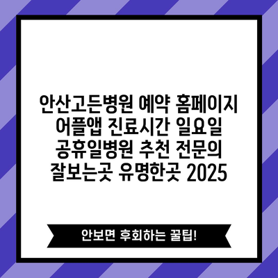 안산고든병원 예약 홈페이지 어플앱 진료시간 일요일 공휴일병원 추천 전연락 잘보는곳 유명한곳 2025 에 대해 자주 묻는 질문 TOP 5