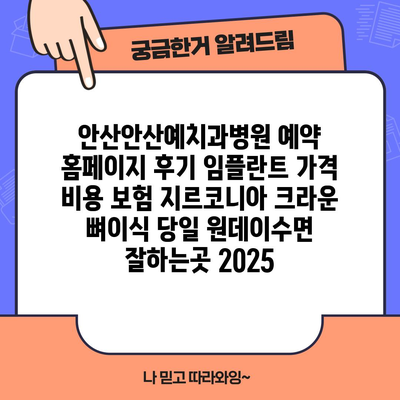 안산안산예치과병원 예약 홈페이지 후기 임플란트 가격 비용 보험 지르코니아 크라운 뼈이식 당일 원데이수면 잘하는곳 2025 에 대해 자주 묻는 질문 TOP 5