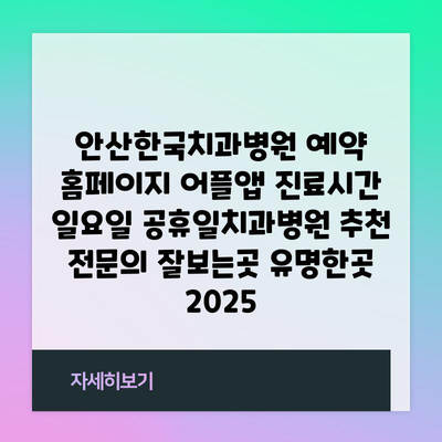 ✅ 안산한국치과병원의 진료시간과 예약 방법을 빠르게 알아보세요.
