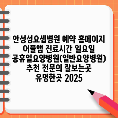 ✅ 안성성요셉병원의 진료시간과 예약 방법을 쉽게 알아보세요!