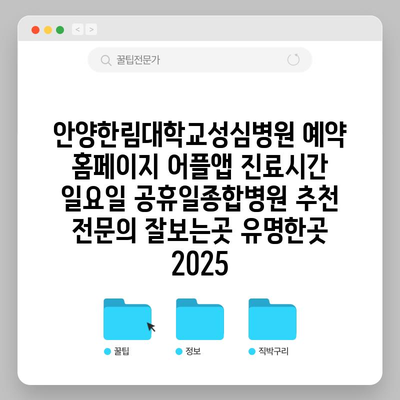 안양한림대학교성심병원 예약 홈페이지 어플앱 진료시간 일요일 공휴일종합병원 추천 전연락 잘보는곳 유명한곳 2025 에 대해 자주 묻는 질문 TOP 5