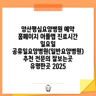 양산평심요양병원 예약 홈페이지 어플앱 진료시간 일요일 공휴일요양병원(일반요양병원) 추천 전연락 잘보는곳 유명한곳 2025 에 대해 자주 묻는 질문 TOP 5