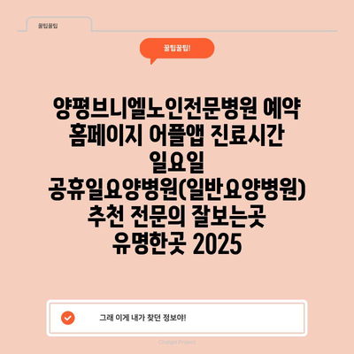 양평브니엘노인전문병원 예약 홈페이지 어플앱 진료시간 일요일 공휴일요양병원(일반요양병원) 추천 전연락 잘보는곳 유명한곳 2025 에 대해 자주 묻는 질문 TOP 5
