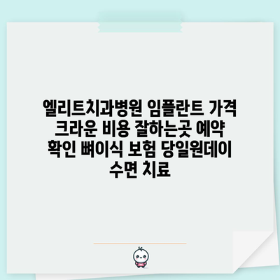 엘리트치과병원 임플란트 가격 크라운 비용 잘하는곳 예약 확인 뼈이식 보험 당일원데이 수면 치료 에 대해 자주 묻는 질문 TOP 5