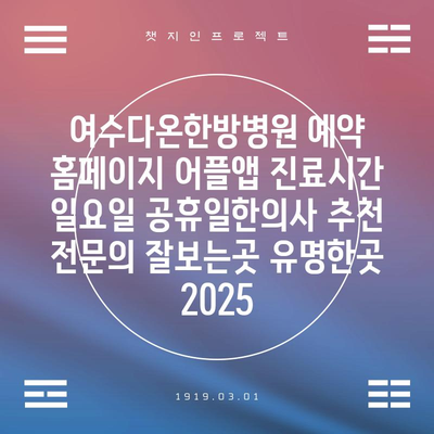 ✅ 여수다온한방병원의 진료시간과 예약 방법을 알아보세요.