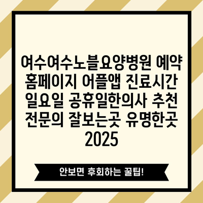 여수여수노블요양병원 예약 홈페이지 어플앱 진료시간 일요일 공휴일한의사 추천 전연락 잘보는곳 유명한곳 2025 에 대해 자주 묻는 질문 TOP 5