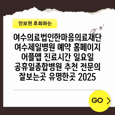 여수의료법인한마음의료재단 여수제일병원 예약 홈페이지 어플앱 진료시간 일요일 공휴일종합병원 추천 전연락 잘보는곳 유명한곳 2025 에 대해 자주 묻는 질문 TOP 5